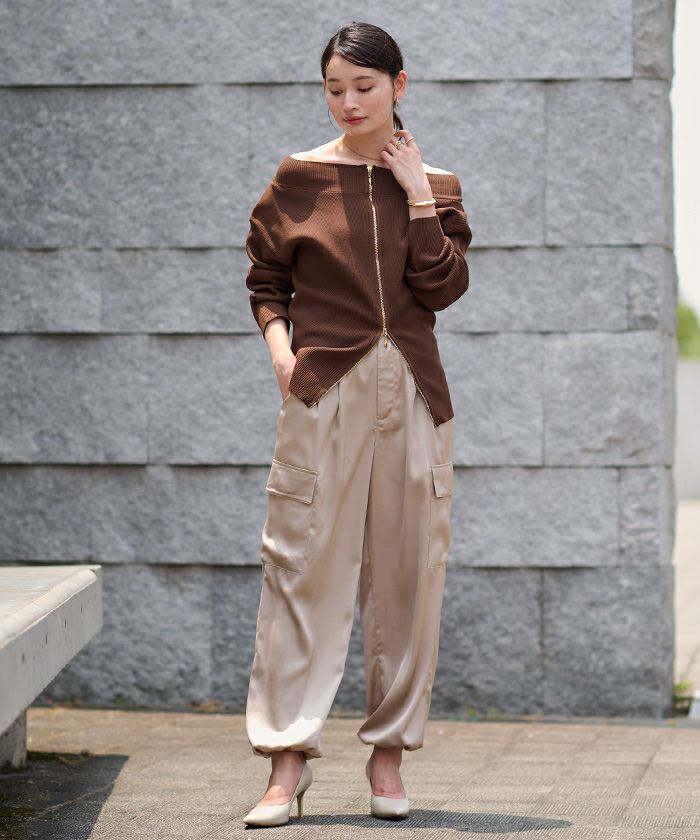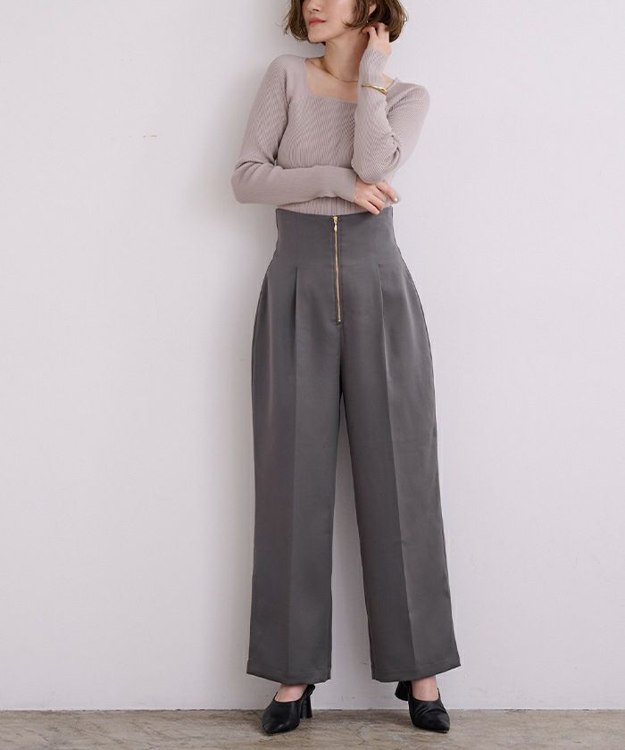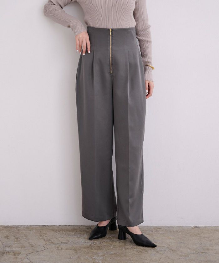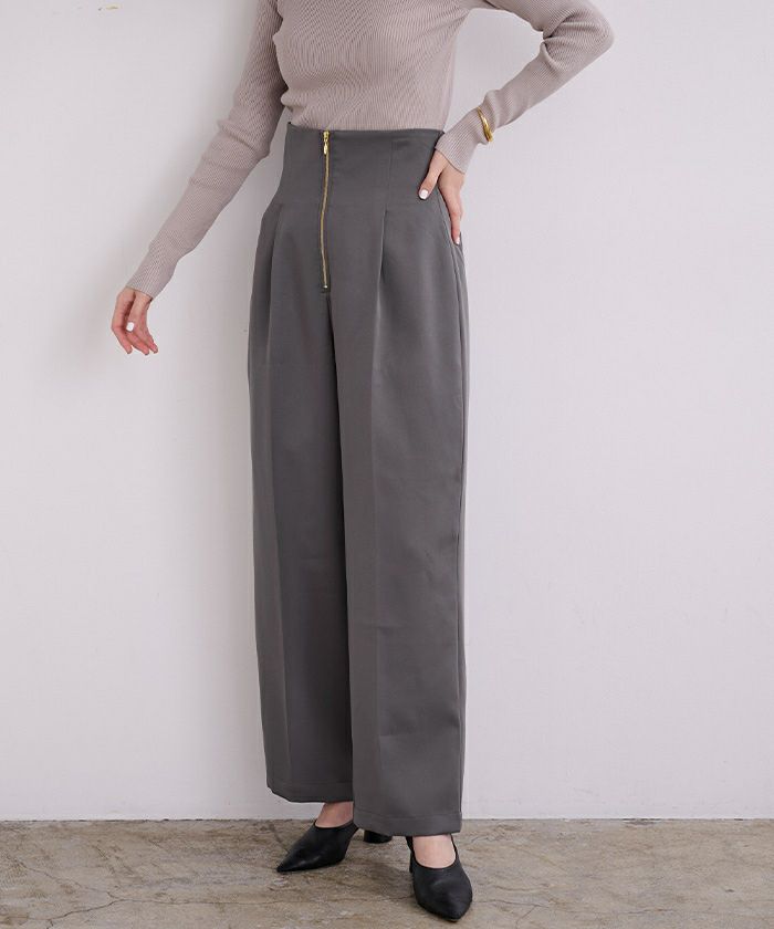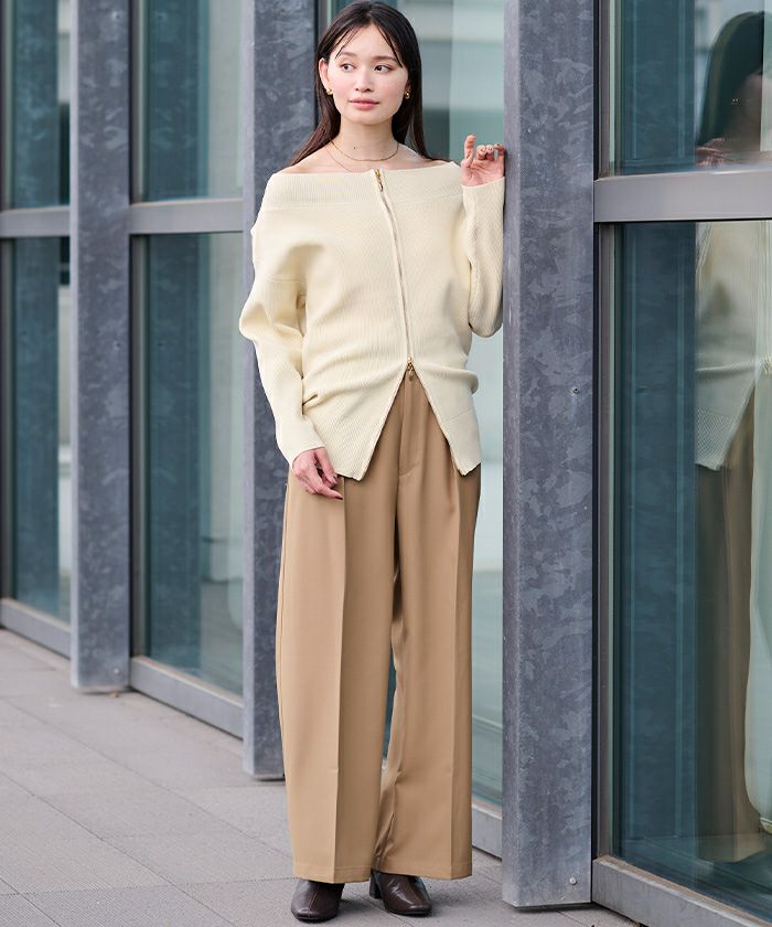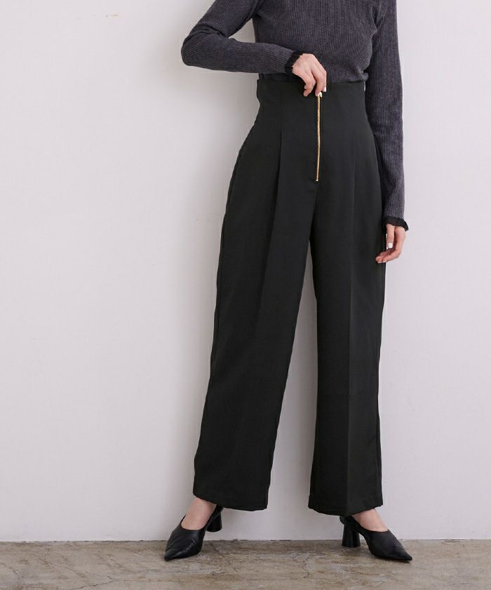 【洗える】【期間限定★SALE】 ZIPデザインタックワイドパンツ
