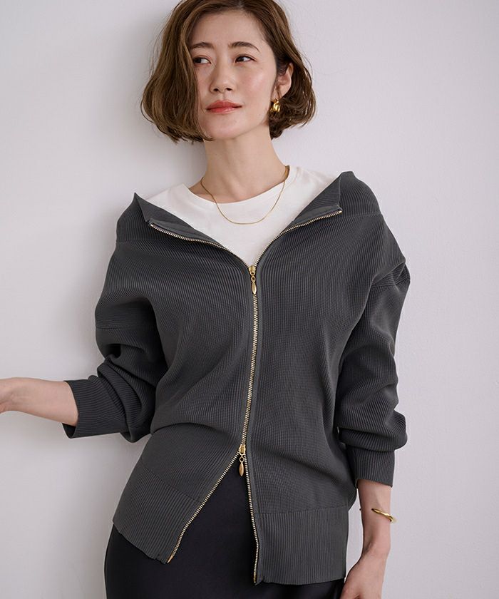 【イチ推し】【期間限定★SALE】 スウェットライクZIPニットカーディガン