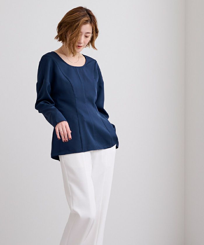 □【イチ推し】【期間限定★2500均一】 ラウンドネックウエストシェイプブラウス【メール便可/100】