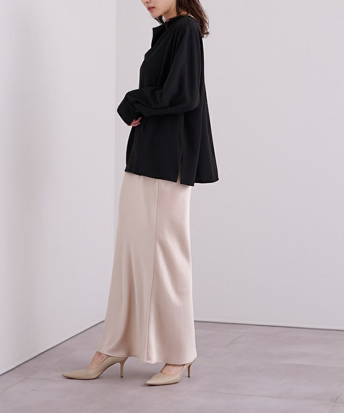 □【星玲奈さんコラボアイテム】【セレモニーアイテム】【期間限定★SALE】 バンドカラーパフスリーブブラウス 【メール便可/100】