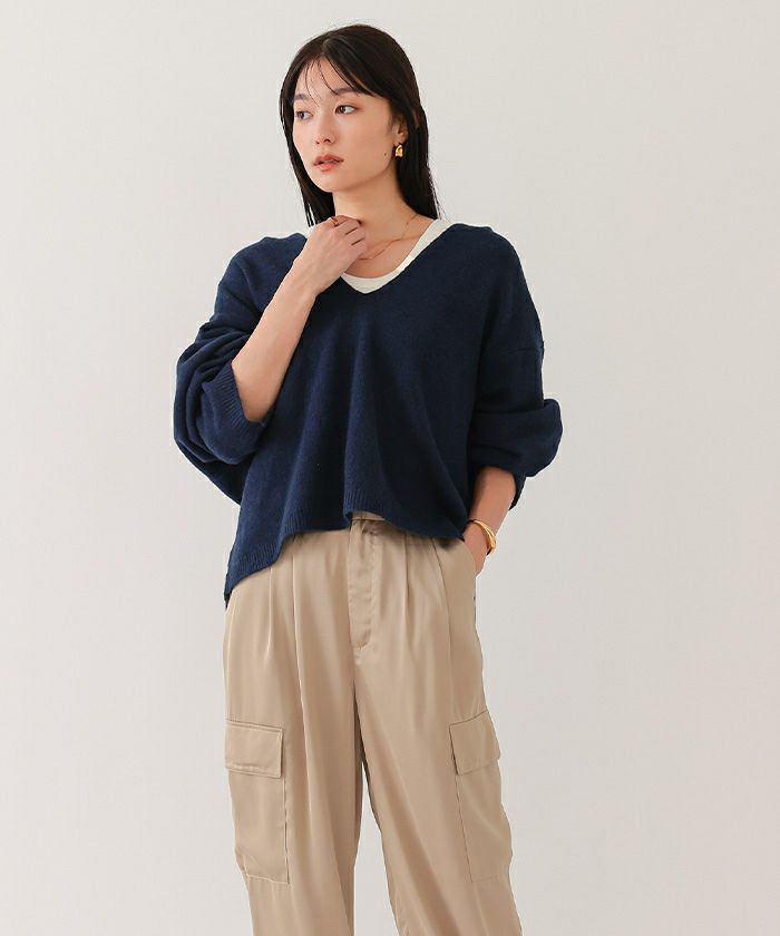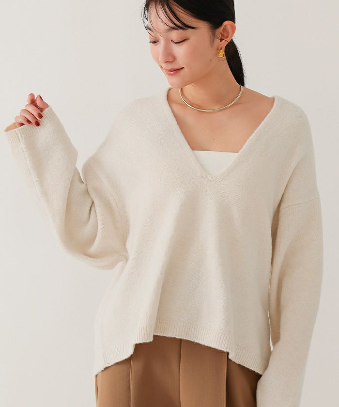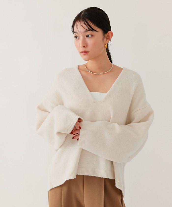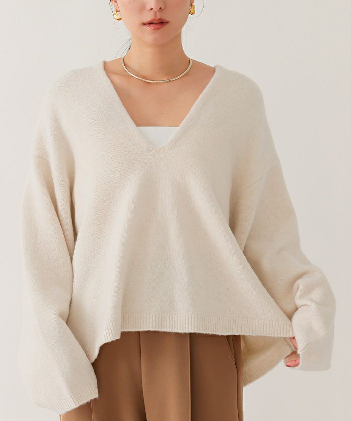 【期間限定★1500均一】 ワイドVネックニット