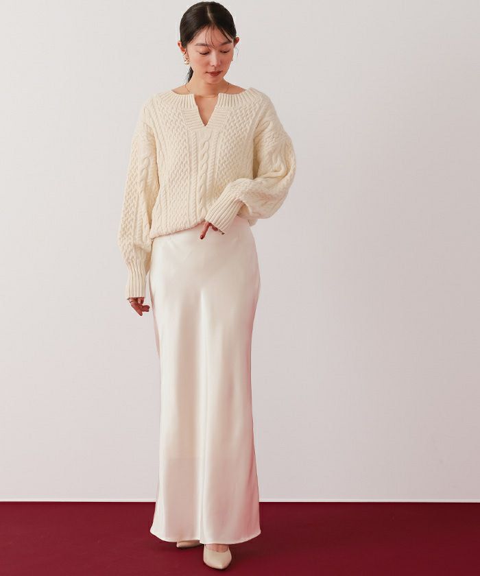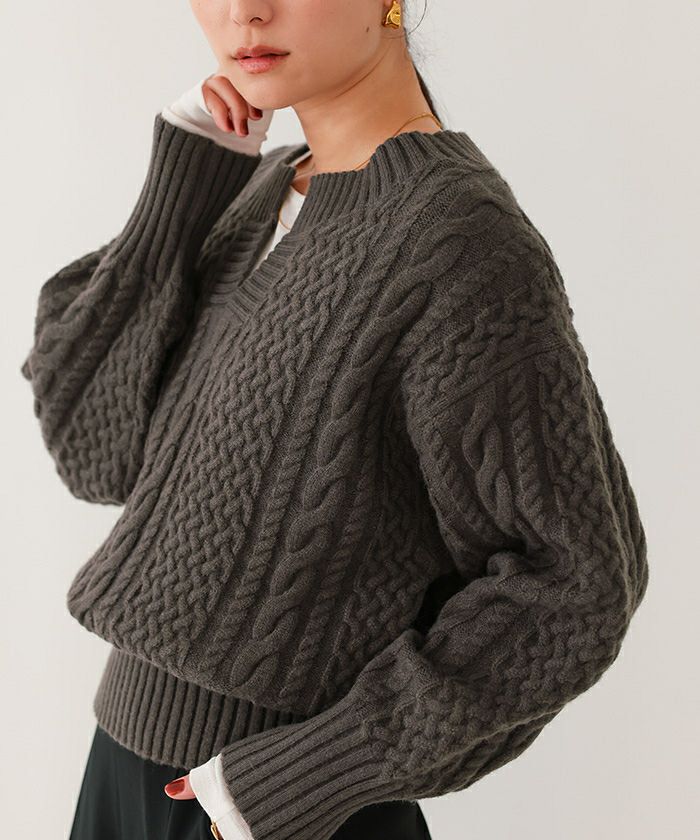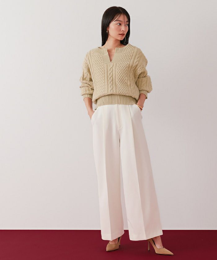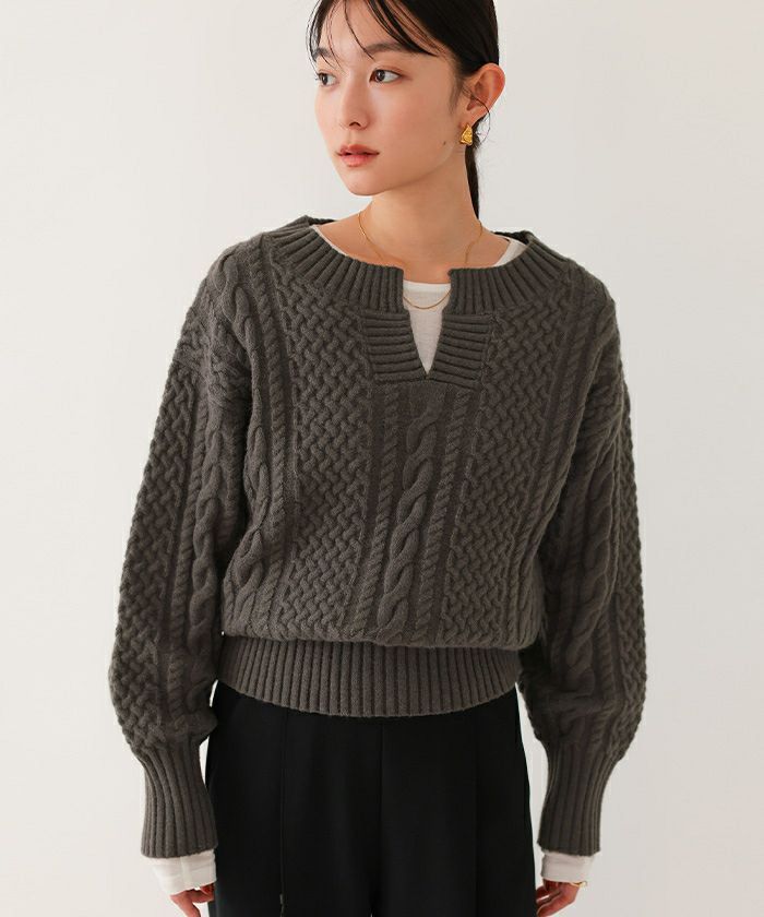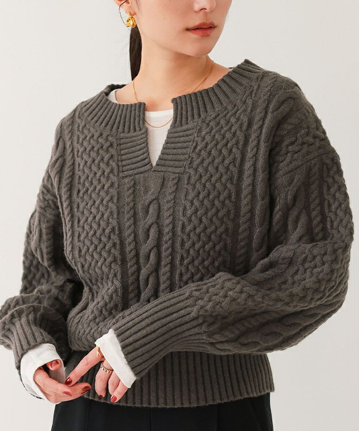 【イチ推し】【期間限定★3000均一】 キーネックケーブルニット