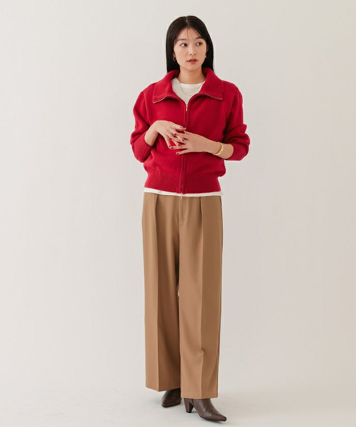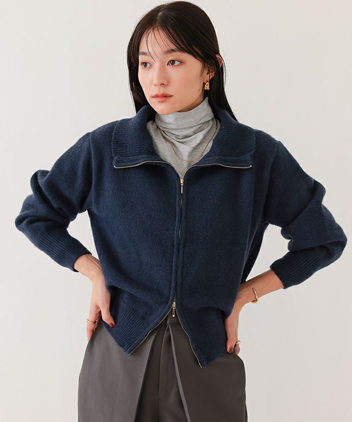 ■【イチ推し】【期間限定★SALE】 スウェットライクZIPニットカーディガン
