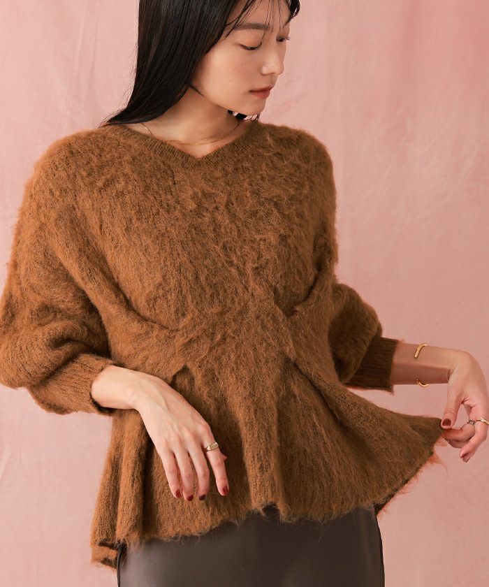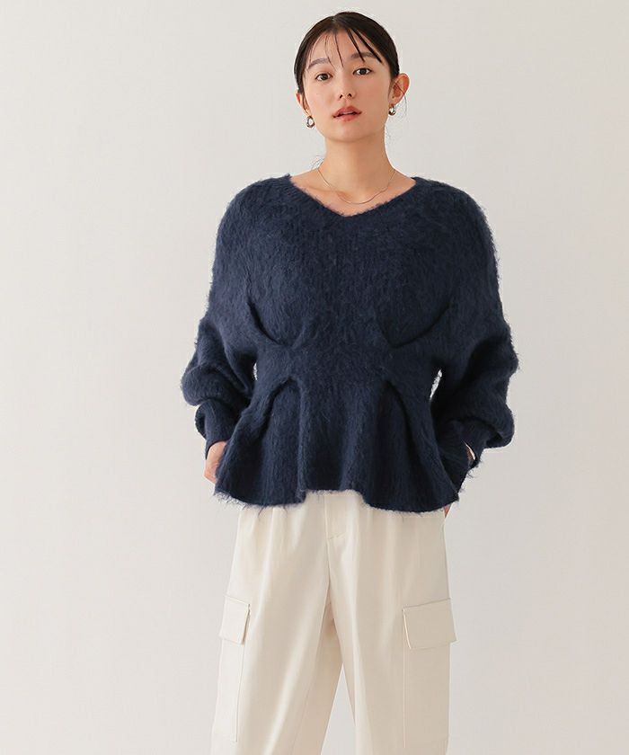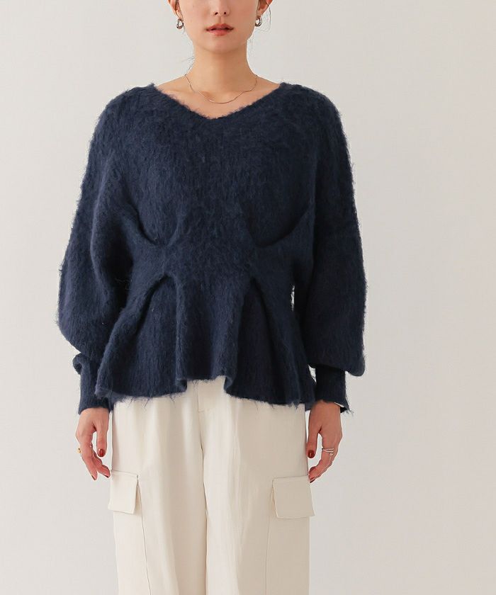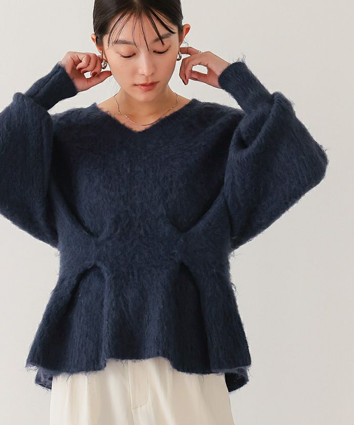 【イチ推し】【期間限定★2500均一】 Vネックウエストタックペプラムニット