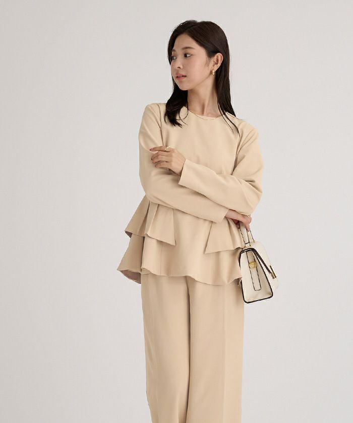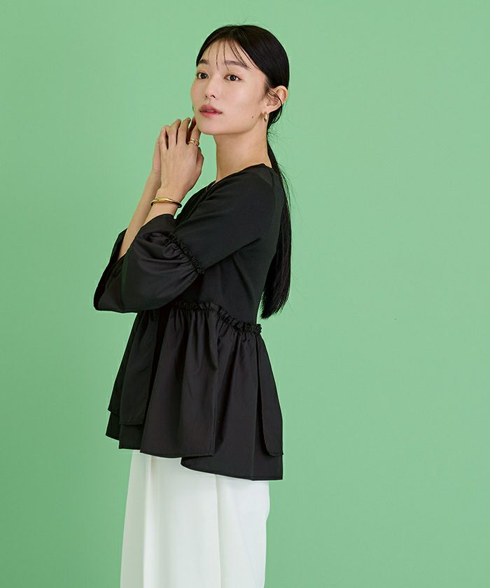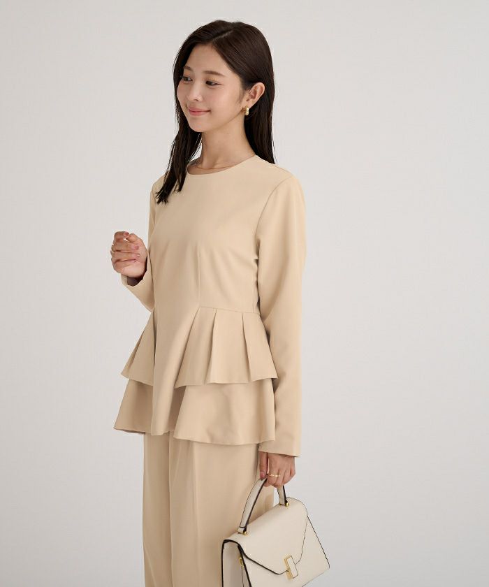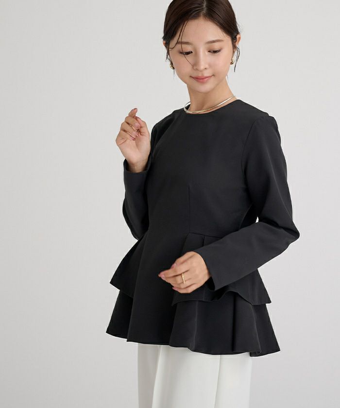 □【セレモニーアイテム】【セットアップ可能】【期間限定★SALE】 フリルペプラムブラウス