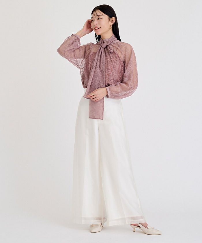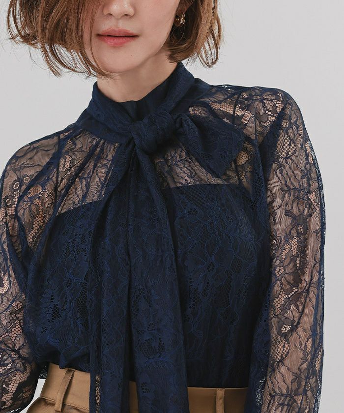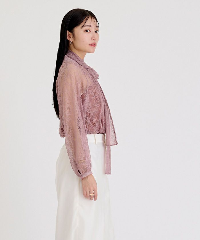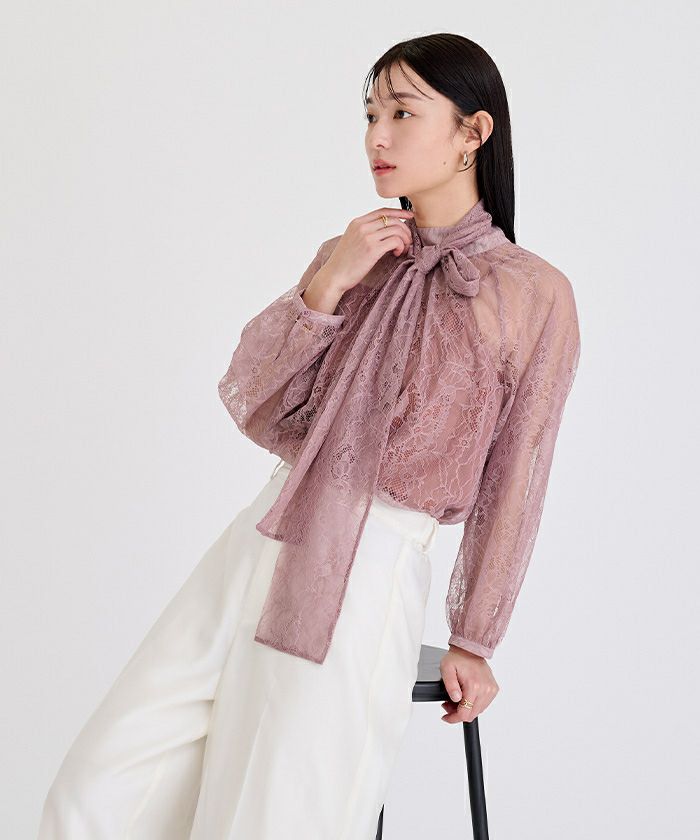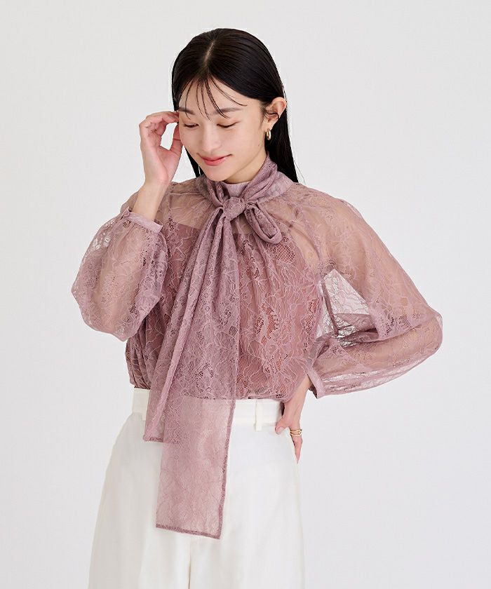 □【イチ推し】【期間限定★SALE】 レースボウタイブラウス【メール便可/100】