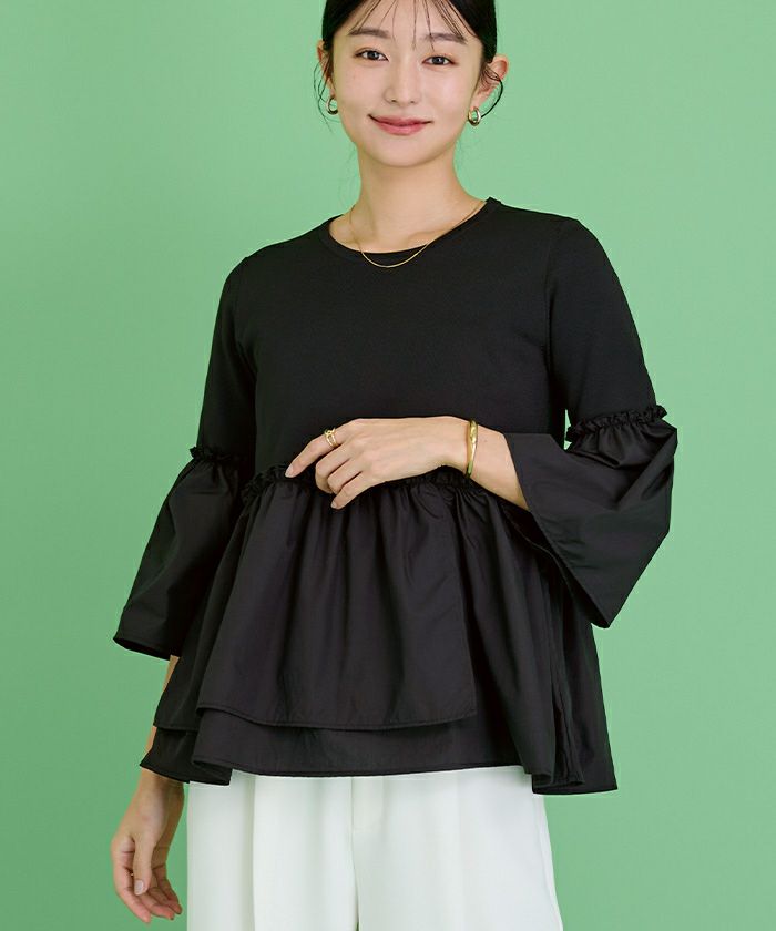 【イチ推し】【期間限定★3900均一】 異素材ドッキングフレアプルオーバー