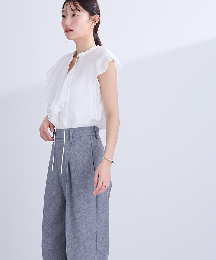 他の画像を見る 【新作★期間限定15%OFF★13日11時カラ】【イチ推し】 フリルヘムノースリーブブラウス【メール便可/100】 定価 ¥ 5,599 のところ 価格 ¥ 4,758 税込 販売開始前です。 販売期間 2026/03/13 11:00 〜 2026/03/23 10:59 お気に入りに登録する