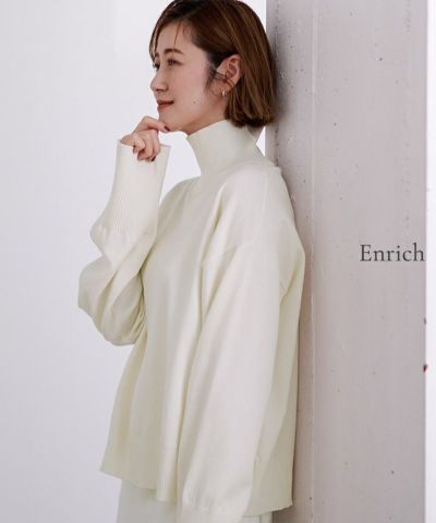 同じ生地のカーディガンが気に入ったのでハイネックも購入^^ 161cmで肩幅広めな体系ですが、指先まですっぽり隠れるくらい長くてたぷっとした袖のシルエットがきれいです!! ちくちくもしないし首がすっぽり隠れるくらいハイネックだから冬に重宝しそう。