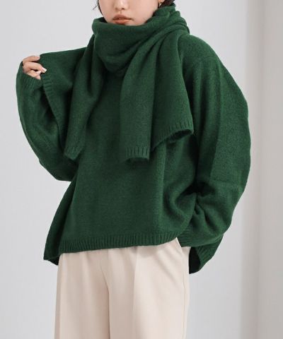 アイボリーを注文。サイズがМしかなかったので、ぽっちゃり体型の私ですが思い切って購入。サイズは私でもМで十分。。お品はかなりオススメです。やはりマフラーとニットがセットになってるのが素敵!こういうのを待ってました。ニットを着てサッとマフラーを巻くだけでお洒落になるのはポイント高いですね。またマフラーはグルリと巻いて片方だけ垂らしても落ちてこない。良いですね〜 また、このシリーズを作ってほしいです。グリーンも買おうか迷ってます。