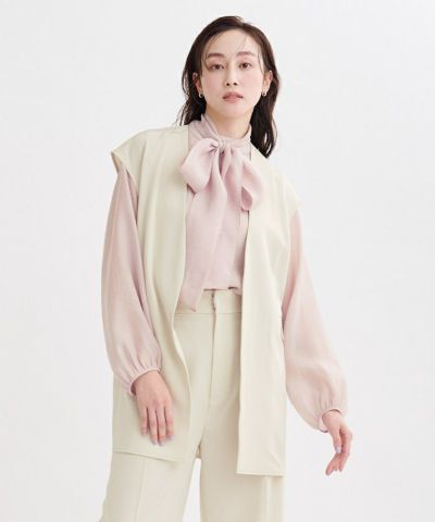 アイボリーをズボンとセットで購入しました。 生地がかなりペラペラで 襟ぐりから下までの開いている部分が勝手に裏返ってきてしまいます。