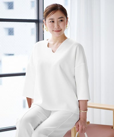 ネイビーを購入。骨格診断がウェーブなのでVネックは普段は苦手なのですが、このトップスはアシンメトリーで可愛らしく、ウェーブでも着こなせるトップスでした。胸が大きいとハリ感が出てしまうのでそのあたりは注意しています。