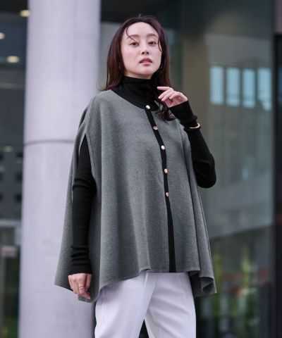 紺色を購入しました。ボタンがアクセントになって上品綺麗めです。しっかりした生地で、ケープなのでインナーでこなれた感じになります。