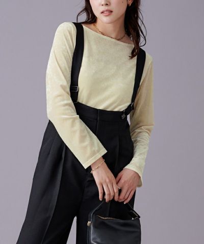 メッシュベロアボートネックトップス【メール便可/70】