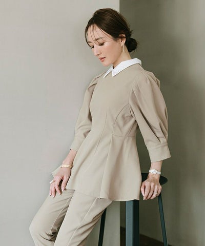 2way襟付タックペプラムトップス