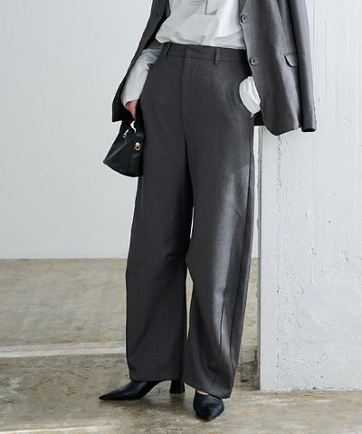 丈長めのパンツ。 少しハイウェストで楽に履けます。気に入って色違いも購入しました。 形が気に入りました。