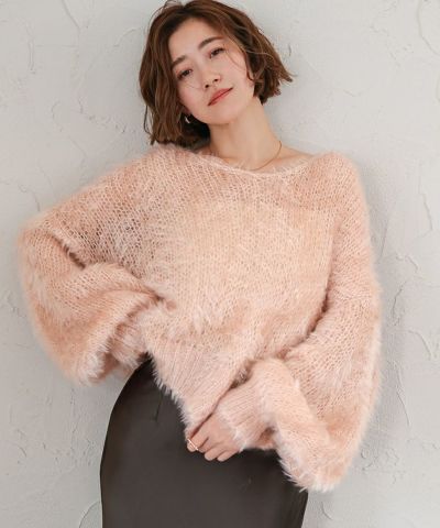 素材がふわふわで柔らかく、チクチクも一切ない気持ちの良いニットです。ネックの開きが大きいため、肩から落ちるのが心配でしたが、程よい感じで肩に乗ってくれました。1枚で着用するときは後ろへ抜くと胸元も開きすぎず、後ろ姿は女性らしいです。タートルなどを重ね着するときは、前を深めにするとイメージが変わって楽しめそうです。見頃のゆったり感に反して、袖口はしっかり伸縮性があって、捲ったときにキュッととまるのがまたバランスよくて可愛いです。 モテニットと呼ばれているだけあって、見た瞬間に幸せになる可愛さです。