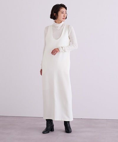 高見えする生地と、すっきり見えるIラインのデザインなところが、大人が着れるジャンスカという感じで重宝してます。Iラインということもあって、ある程度タイトなので下に分厚いものは持ってこれないです。