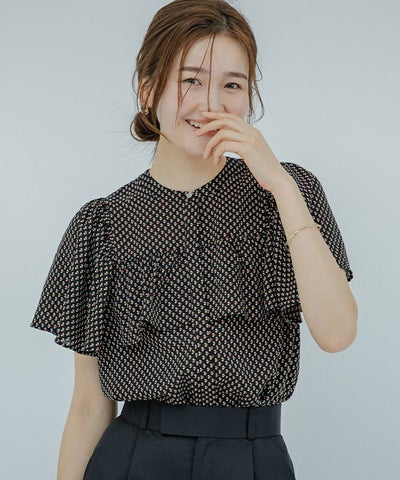 ゴールド釦ジオメトリックフリルブラウス【メール便可/100】