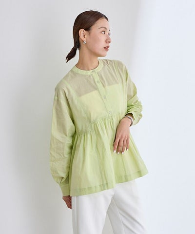 コットンギャザーペプラムブラウス