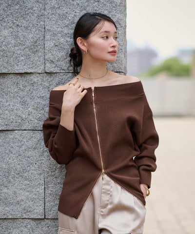 ダブルファスナーニットプルオーバー