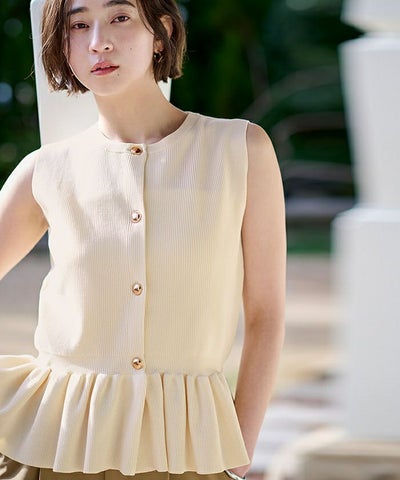 ゴールド釦ペプラムノースリーブニット【メール便可/100】