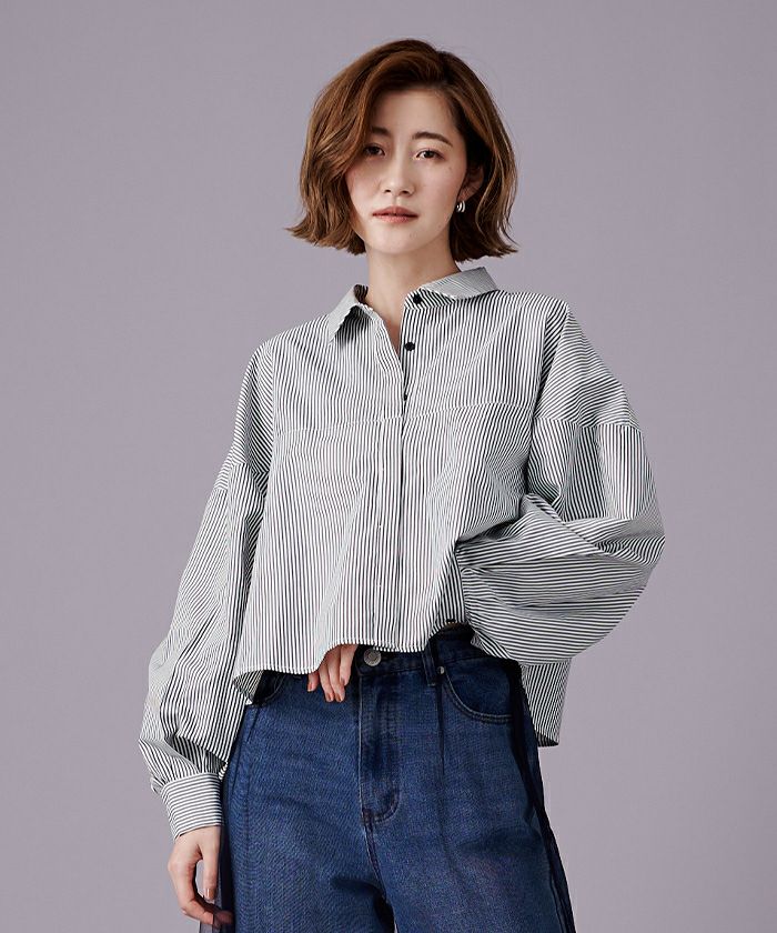 襟小さめ袖がポワンでモードっぽくも女性らしさがあって気に入っています。秋にとても重宝しました。 -