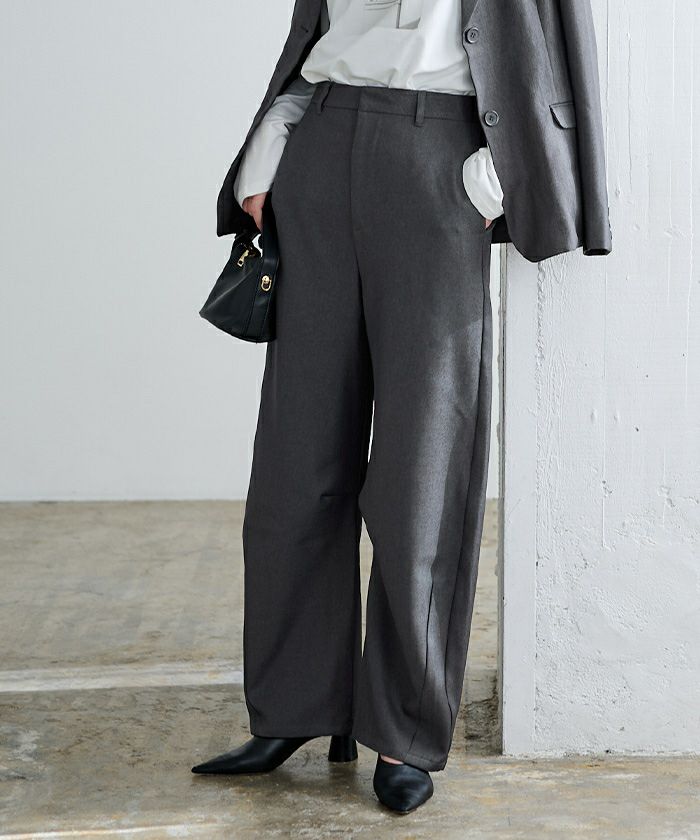 シワになりにくく厚みがあるしっかりとした生地で高級感あり。ワイドシルエットがきれいでトップスをコンパクトにしてもゆるっとしても合わせやすいです。
