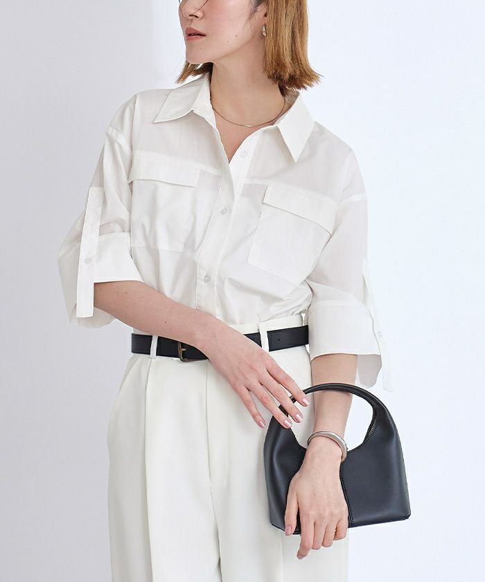 161センチ50キロ、上半身薄いタイプで、ピンクのMサイズ購入しました。上品なピンクで甘すぎず、仕事にも着用出来ました。腕周りの脇の部分がかなり開いており、インナーは必須ですが、私はパンツと同色のブラトップを合わせて着て、統一感が出たのでそこは問題なく、開いてることと、短丈でパンツにインする必要もなくアウトで着れたことで、とても涼しかったです。汗染みに関してはお色が薄いため検証出来ませんでしたが、商品にはとても満足してます。 -
