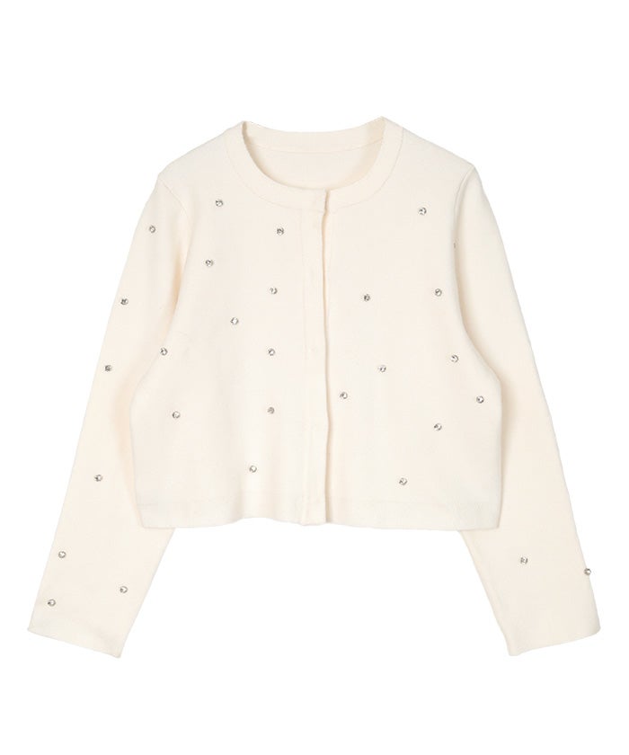 普段ビジューのアイテムは選びませんが、一目惚れして購入しました。ビジューの立体感や大きさ、配置が絶妙で高見えします。サイズ感も程よいので、キレイめにもカジュアルにもどちらにも合いそうです。ホックで止める仕様でボタンが見えないのがとても好きです。サッと羽織れるので、長い時期着れて飽きもこなさそうです。沢山着ます。 -