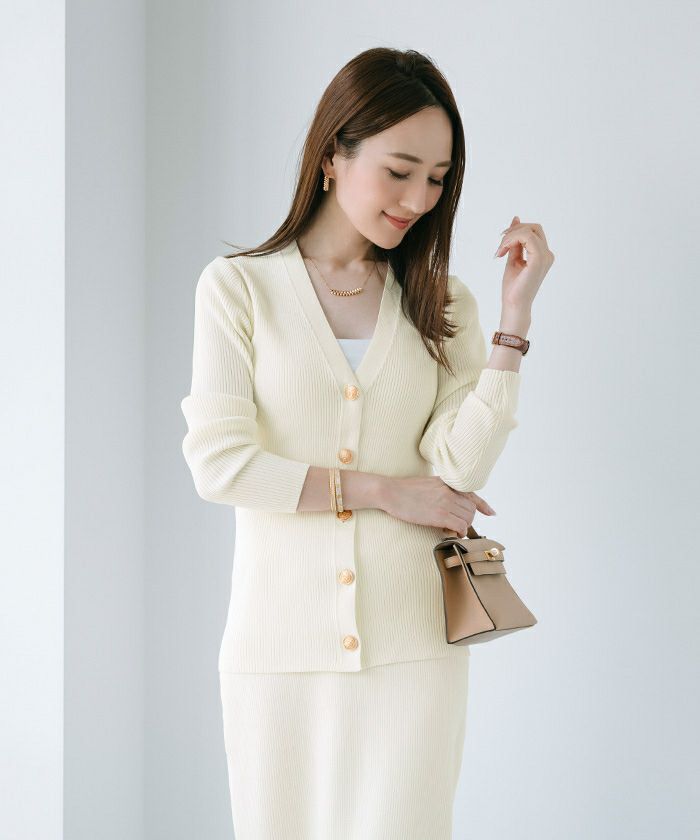 ブラックをスカートとセットで購入しました。 シックな感じで良いです。Vネックとニットの縦ラインの効果か、上半身が細く見えます。 ブラック、ベージュを買いましたが、ホワイトもほしくなりました。 -