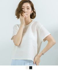 白を持っていてとても気に入っていたので黒も購入。形はTシャツ風ですが素材が上品なので綺麗めに着れます!