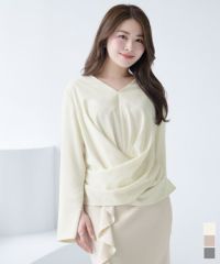 163センチ47キロMサイズ…グレー どの色にするか迷ったのですが、グレーを購入しましたが、暗いグレーでもなく上品な色合いで気に入りました。Vネックが広すぎずデコルテをキレイにみせてくれます。ウエスト部分のドレープからピップラインをカーバしてくれるデザインで後ろ姿もオシャレ感をアップさせてくれます。 -