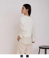 163センチ47キロMサイズ…ネイビー Vネックで女性らしい華奢なブラウス! バックスタイルのプリーツがキレイです。ピップまわりが気になる私にはプリーツが自然と隠れるので嬉しい! -