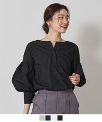 袖のポワンとしたデザインと、ネックの空きのきれいなのが好きです。 丈もインでもアウトでもどちらでも合うのでボトムスを選ばないところも優秀なブラウスだと思います。