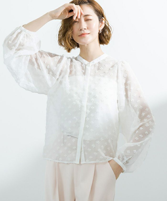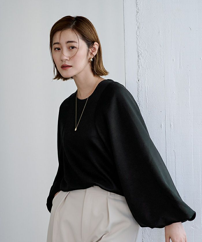 163センチ47キロMサイズ…オフホワイト バルーン袖の為か生地が少し重みを感じます 襟元は丁度いいあきです バルーン袖のドレープがステキです 袖口に入ってあるゴムが袖丈をブライジングできるのでオシャレに着こなせます パンツやスカートに合わせやすいアイテムです -