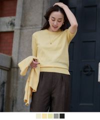 ハーフスリーブニットと一緒に購入しました。 アンサンブルでコーデが決まるので重宝してます。 生地も柔らかく気に入りました。