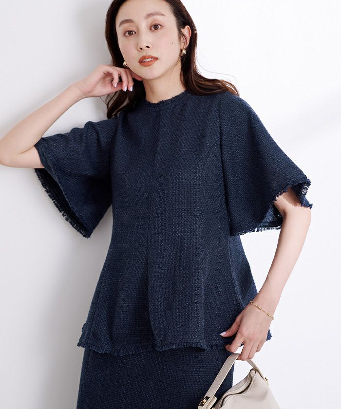 とても上品なサマーツイードで、シルエットも可愛くてテンションがあがるお洋服です。裏地もないので見た目よりも涼しく着れます。ファスナー部分も長く、大きく開くので着やすいです。 -
