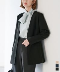 ノーカラーですっきりしたデザインだったので 購入しました。思っていた通り綺麗なシルエットで満足です! 会社に着ていくのに重宝してます。 色違いも買おうか検討中です!