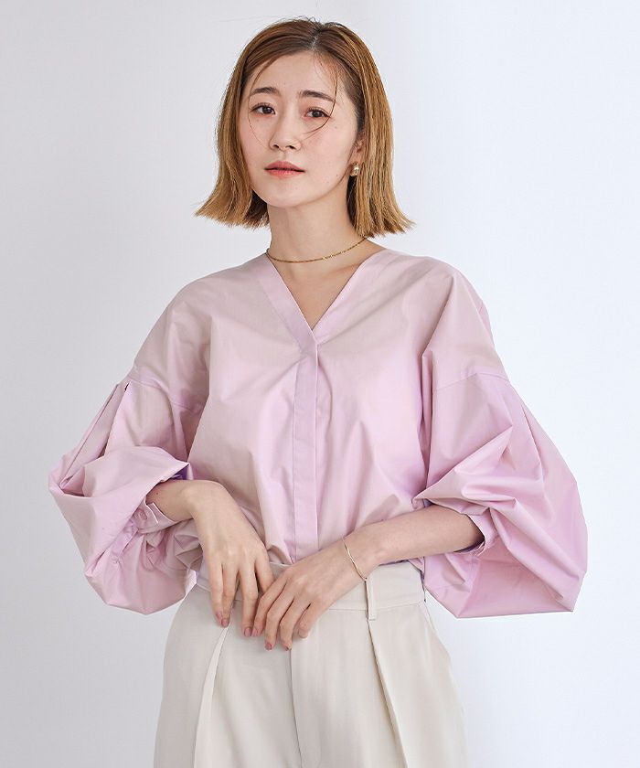 161㎝ Mライトパープル Vネックの空きも上品で オフィスでも着やすいです。 シワになりやすい生地でケアも楽です。 -