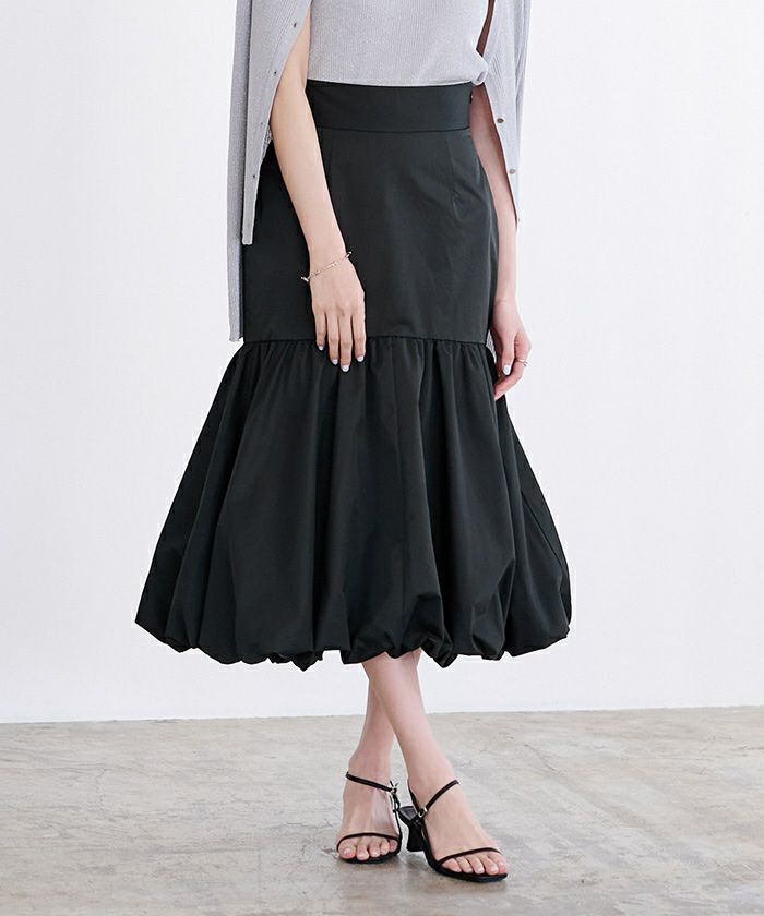 インスタライブを見て購入しました。 生地がまったく伸縮がないです。 ウエストのベルト部分がしっかりしているので、サイズアップしたほうがよかったかな… 形はボリュームがあり素敵です。 -