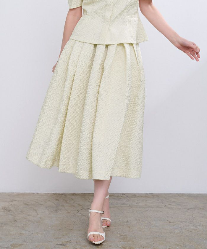 インスタライブを見て購入しました。 生地がまったく伸縮がないです。 ウエストのベルト部分がしっかりしているので、サイズアップしたほうがよかったかな… 形はボリュームがあり素敵です。 -