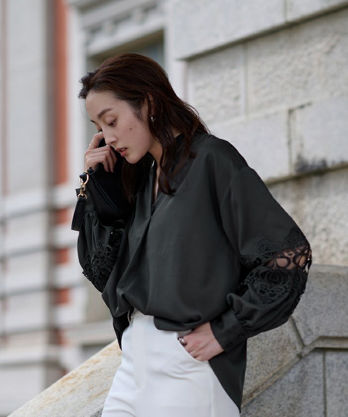 モデルさんと同じ白のパンツと合わせるコーデをしたくて購入。今は袖のレース部分が肌寒いですがとても気に入っておりベビロテ中。高見えします。 -