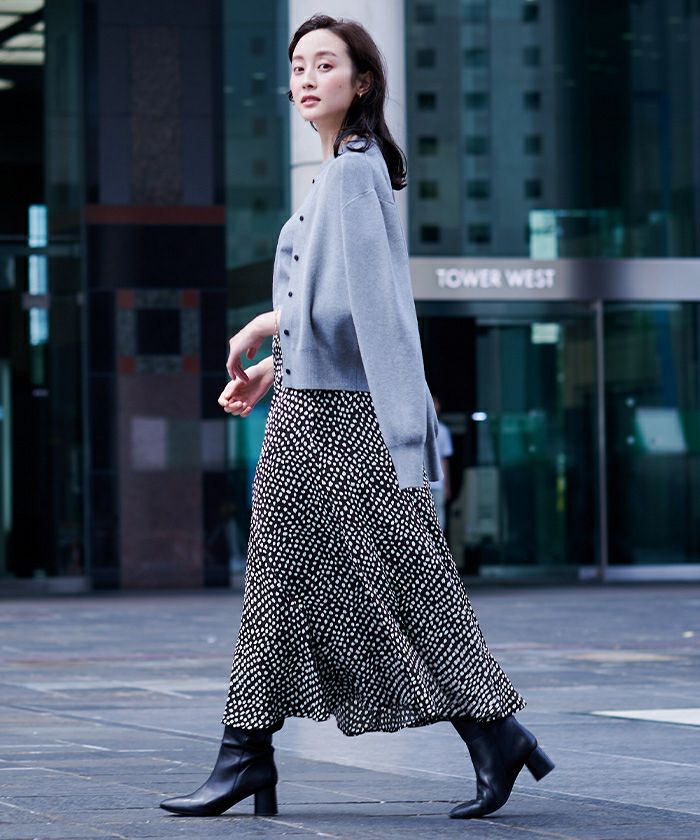 モデルさんのコーデが気に入りホワイト/ブラック購入。オフショルダーのセーターとともに 涼しくなったら早く着たいです。 -
