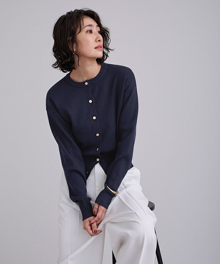 マット釦クルーネックニットカーディガン