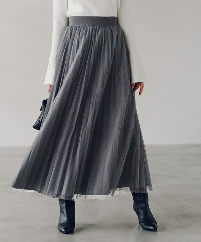 グレーを購入しました。プリーツが広がりすぎないので、すっきり着られました。黒と迷いましたが、グレーにして良かったです。色味が柔らかく着やすいと思います。 -