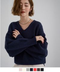 ウエストシェイプキーネックニット【メール便可/100】