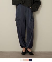 光沢感が強いのでネイビーでも華やかです。素材は軽いので暖かくなったら着ます。裾を絞るとループが少し長いのでペタンコ靴よりヒールがある方が良さそうです。 -