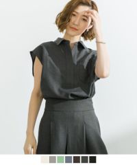 きちんと感がありそうな襟付きが欲しくて購入。袖はノースリーブより少し長さがあり良いですが、襟の開き、脇の開きが大きく見えても良いインナーを着た方が良さそうなのが残念で星4つ。でも合わせられるスカートとセットで着るときちんと感があって、一緒に購入して良かったです! -