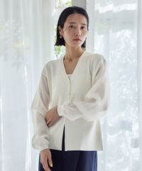 ブラック購入しました。シアー部分が2枚になっていて今の季節も大丈夫な透け感です。 おすすめです。ボタンも同色系でおしゃれです。 -